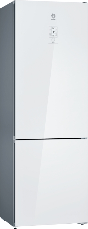 Diseño Serie Cristal Clase de eficiencia energética E (dentro del rango de A a G)* Dimensiones del aparato (alto x ancho x fondo sin tirador): 203 x 70 x 67 cm Tecnología NoFrost FullSkinCondenser en ambos laterales. Mayor capacidad, mayor eficiencia y menor ruido. Sin limitaciones en la instalación Tirador vertical integrado Cajón ExtraFresh Comfort para frutas y verduras con control de humedad y guías de fácil apertura Cajones ExtraCold Comfort ◄0°C► para carnes y pescados sobre bandeja deslizante