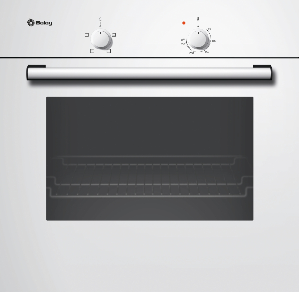 Puerta abatible Gradas cromadas Convencional 4 funciones: Hornear, Solera, Grill total, grill pequeño Indicador luminoso de funcionamiento Mandos fijos Sistema de fácil instalación Accesorios incluidos: Bandeja plana, parrilla